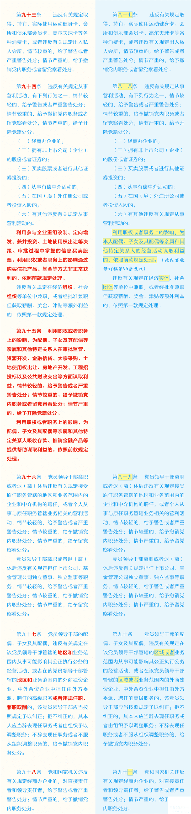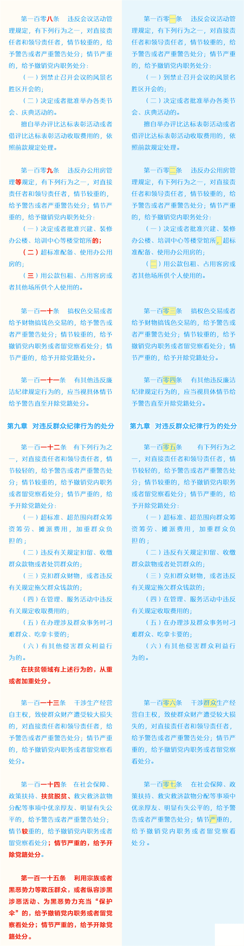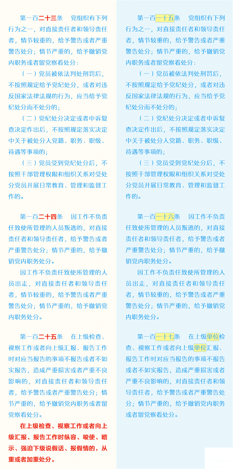 新舊《中國(guó)共產(chǎn)黨紀(jì)律處分條例》對(duì)比