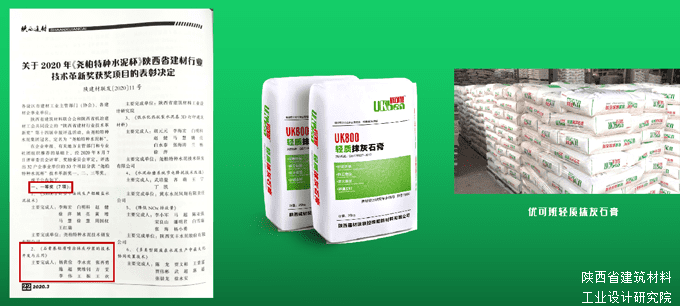 我院優(yōu)可班輕質(zhì)抹灰石膏技術(shù)與應(yīng)用榮獲陜西省建材行業(yè)技術(shù)革新獎(jiǎng)一等獎(jiǎng)