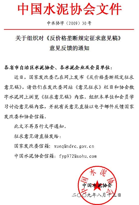 關(guān)于組織對《反價(jià)格壟斷規(guī)定征求意見稿》意見反饋的通知