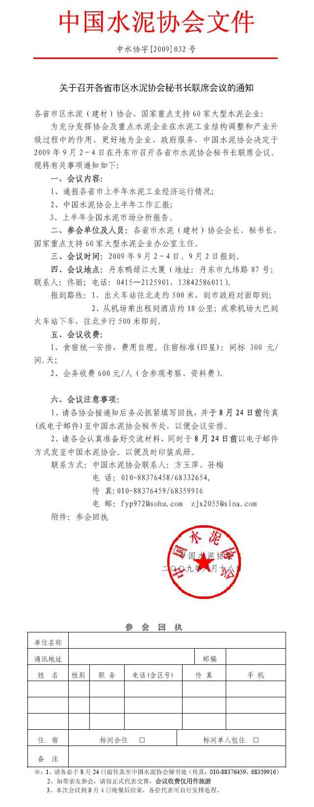 關(guān)于召開各省市區(qū)水泥協(xié)會(huì)秘書長聯(lián)席會(huì)議的通知