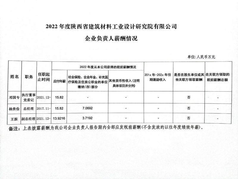 2022年度建材院企業(yè)負(fù)責(zé)人薪酬情況